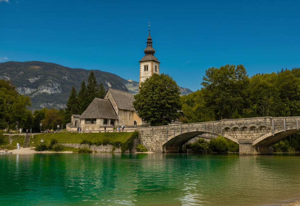 After a 2.5 hour drive arrive at Ribčev Laz, a small village that feels untouched by time. Nestled on the eastern shore of Lake Bohinj, Ribčev Laz offers an authentic glimpse into traditional Slovenian life.
